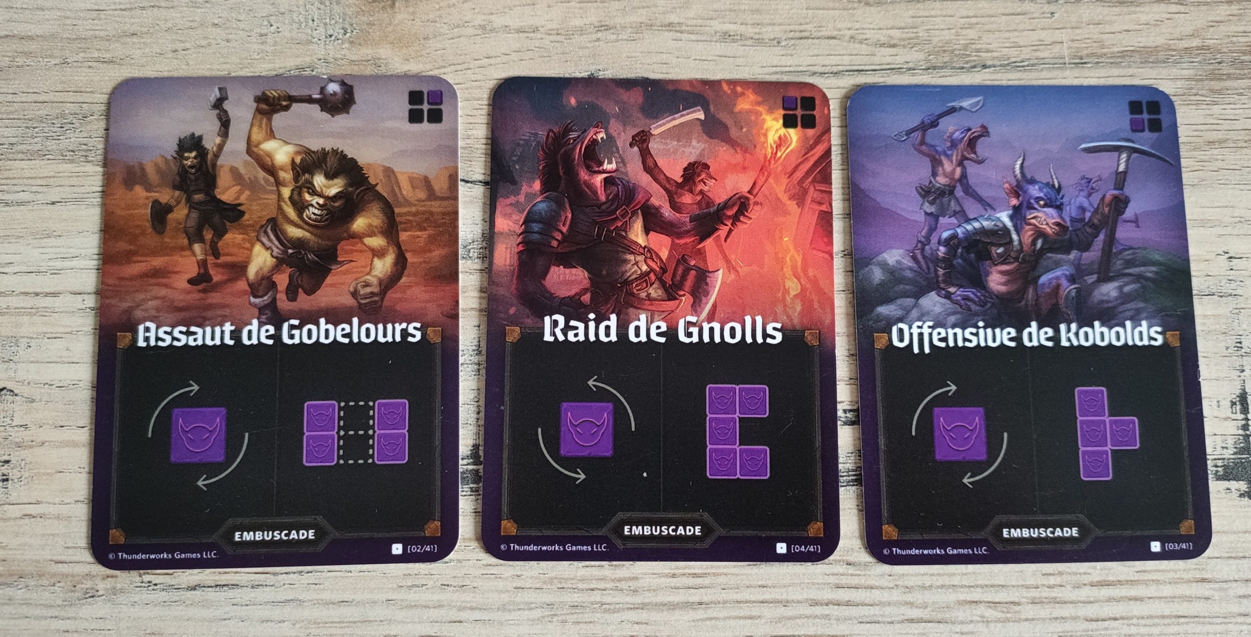 Période de confinement oblige, j’ai pas mal poncé le mode solo et il est plutôt intéressant, même si on perd du coup l’interaction des cartes embuscades (logique me direz-vous …), mais le jeu n’en perd pas son charme et on prend un malin plaisir à enchaîner les parties en mode « beat your score » !
