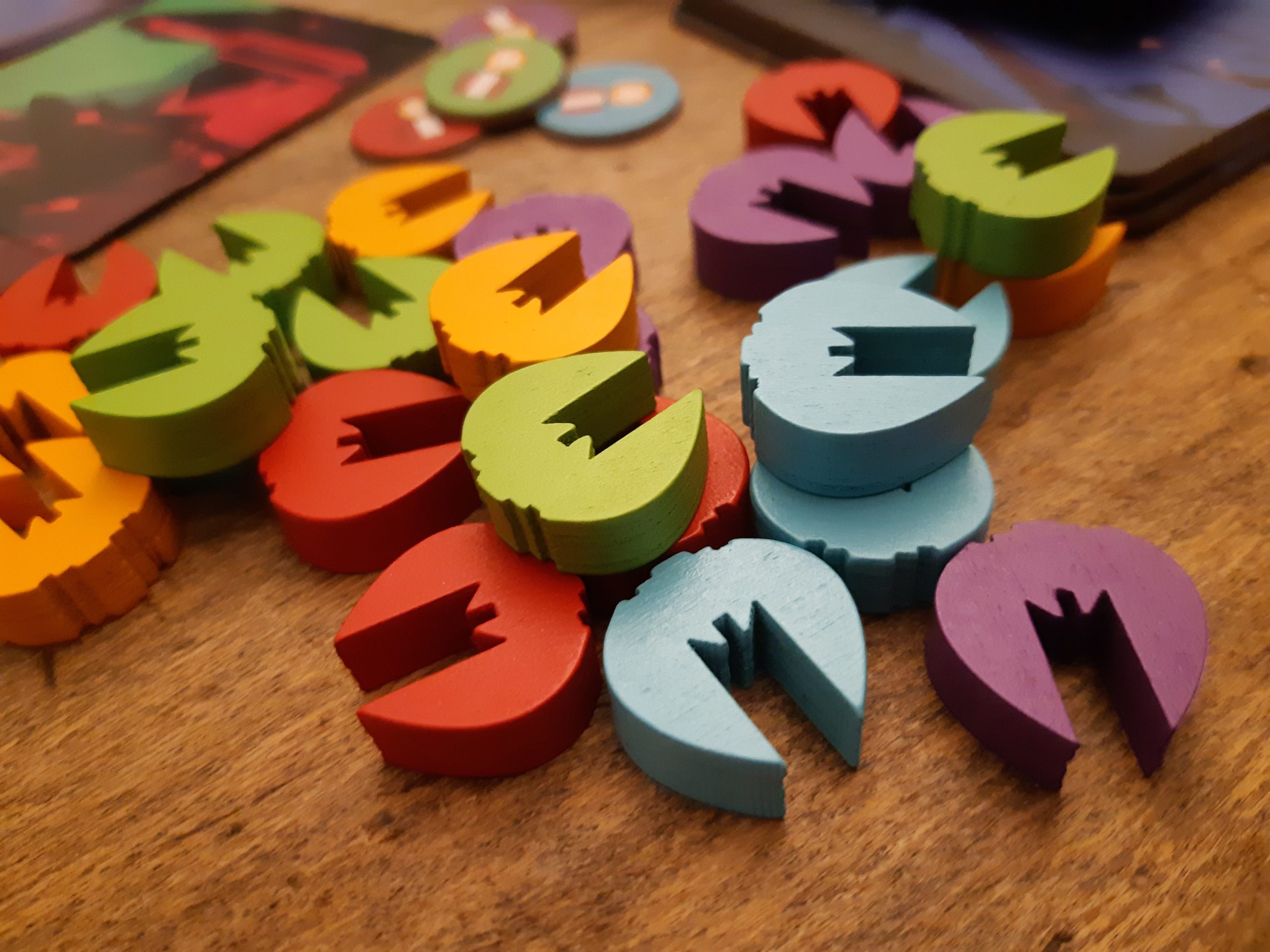 Plein de meeples et de ressources en bois de très bonne qualité, mais par endroits la peinture n’est pas bien englobante pour moi, mais ça se remarque à peine.