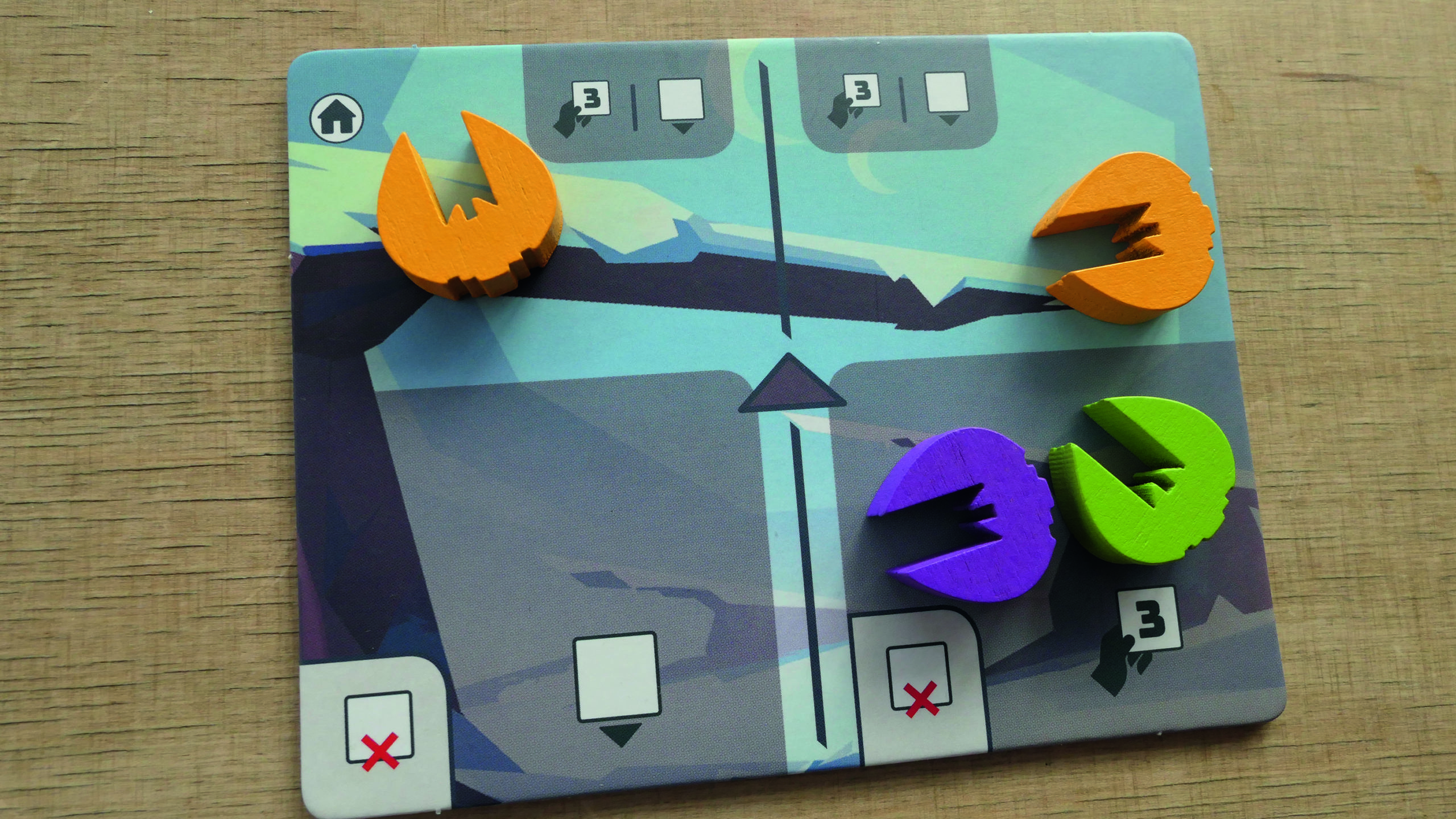 Cela limite aussi beaucoup les temps morts entre deux tours puisque nous jouons 2 fois lors d’un tour de table, ce qui aide à ne pas s’ennuyer le temps que les autres réfléchissent à leur stratégie !