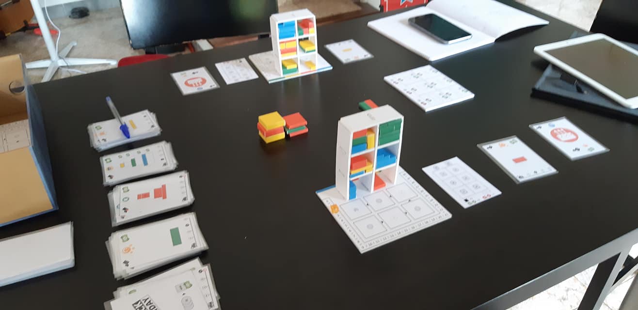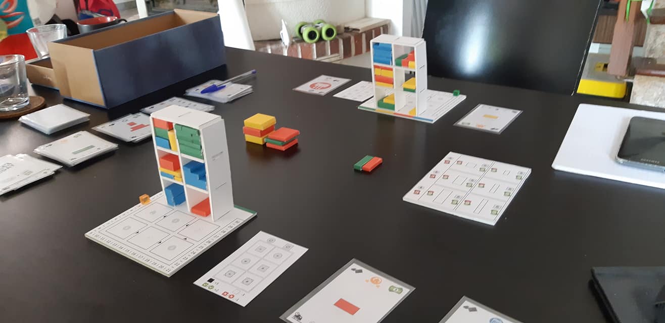Les joueurs commencent avec 15 crédits, à chaque tour vous en récupérerez 2, vos finances sont donc limitées ! Craquer sur des gros jeux c’est bien mais encore faut-il que la boite (couleur et forme) qui vous intéresse soit disponible et que vous ayez les moyens de l’acquérir.