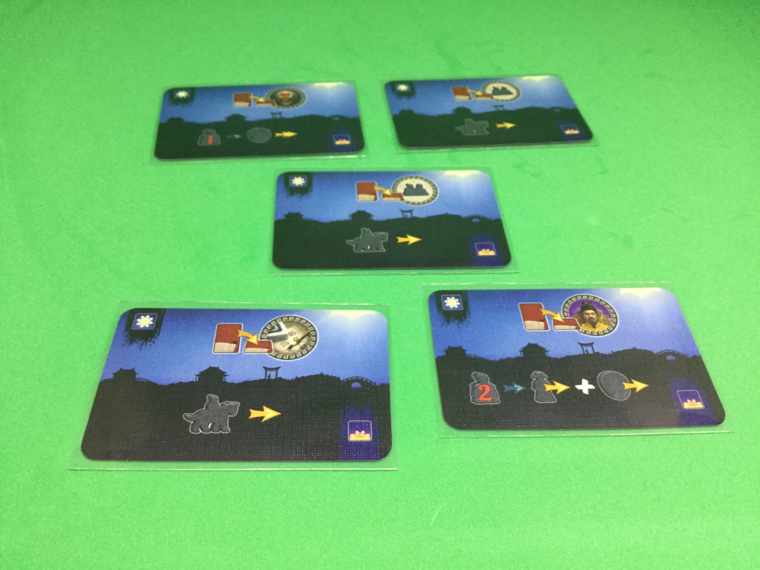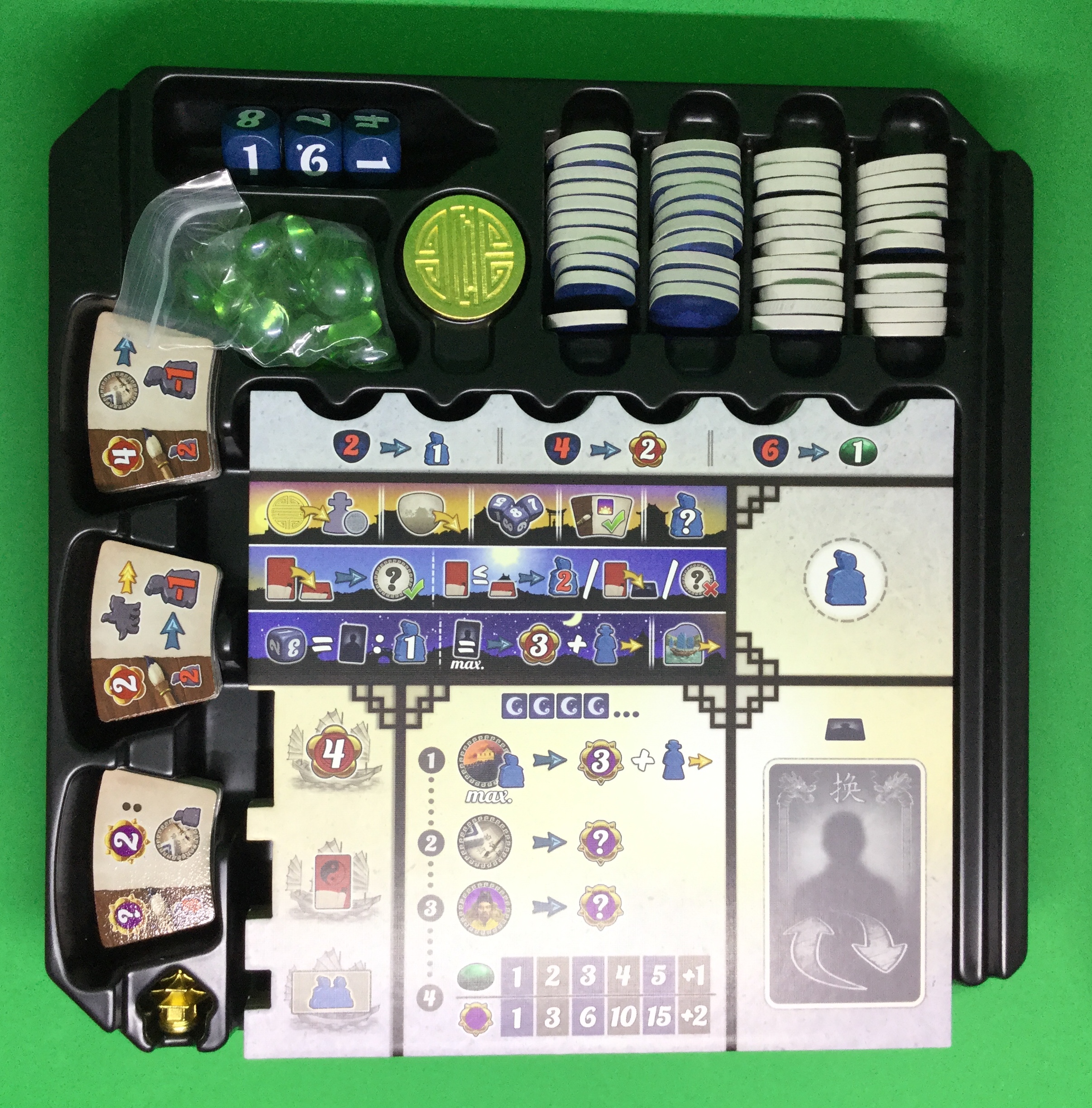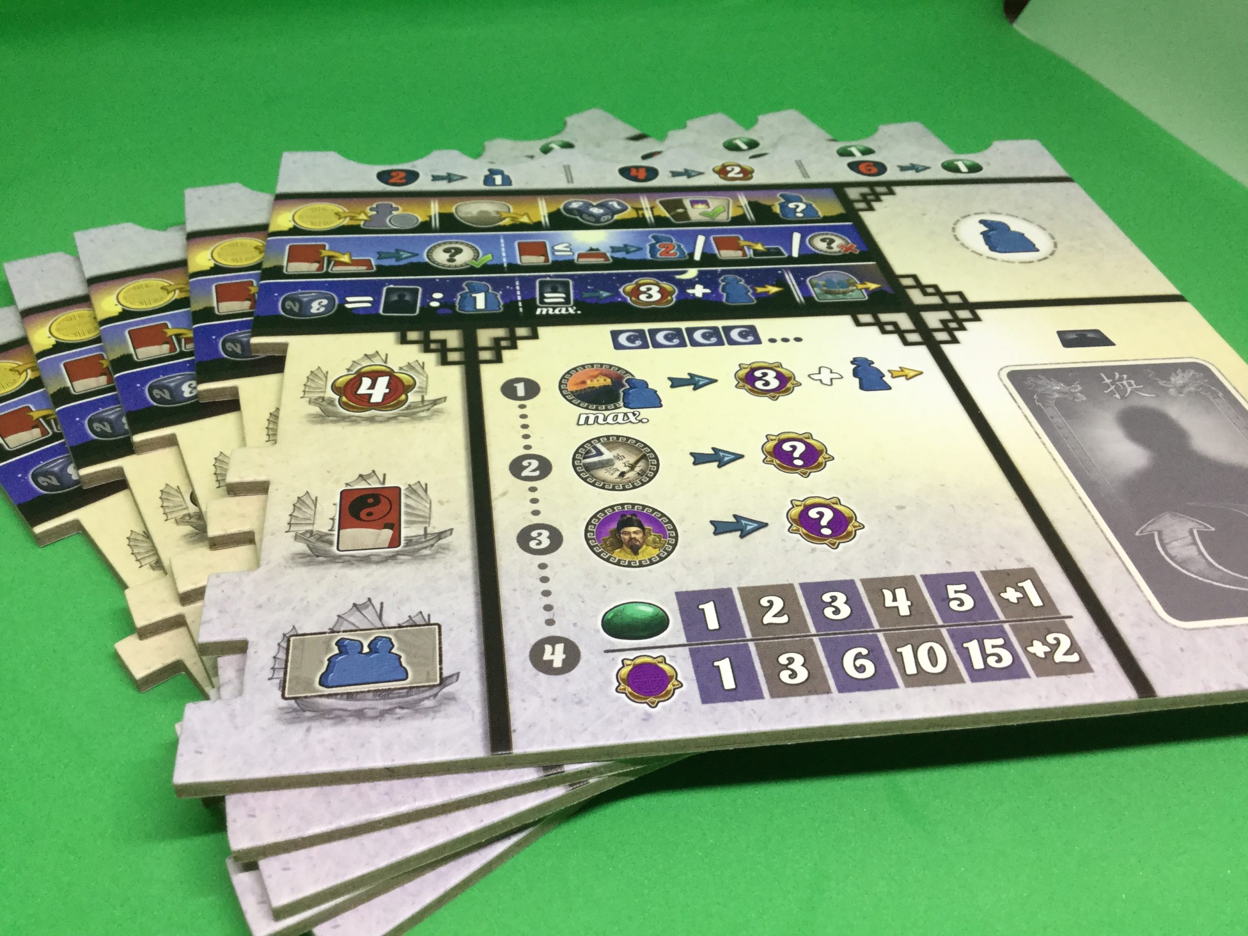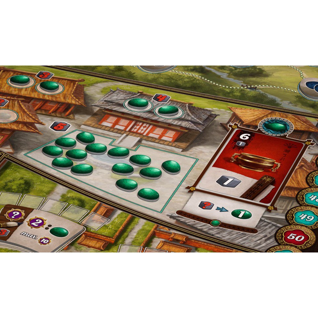 Pas mal d’interactions avec les adversaires qui peuvent amener certains joueurs à tenter de bloquer leurs voisins de table. Un joueur va potentiellement s’orienter vers les jade, tandis qu’un autre privilégiera d’autres actions. Le jeu en tout cas vous permettra de suivre votre stratégie durant les 4 tours que durent la partie et c’est un bon point supplémentaire, puisque vous pourrez voir si vos choix sont payants!