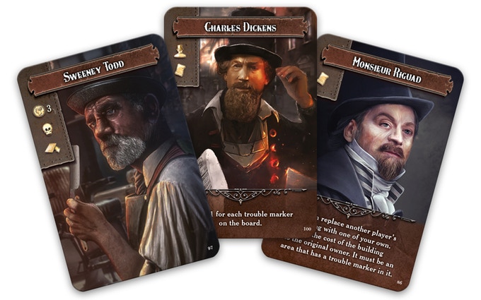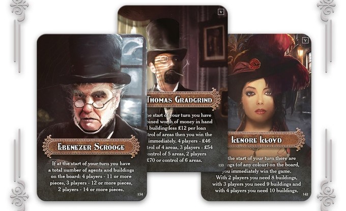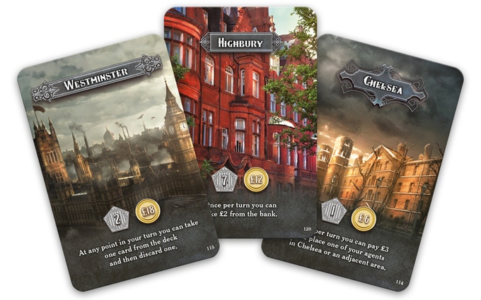 Le plateau central représente Londres et est divisé en quartiers qu’il vous faudra conquérir, contrôler et y placer vos agents, et construire vos bâtiments. Au début du jeu, chaque joueur placera 3 agents dans les quartiers pré-définis.
