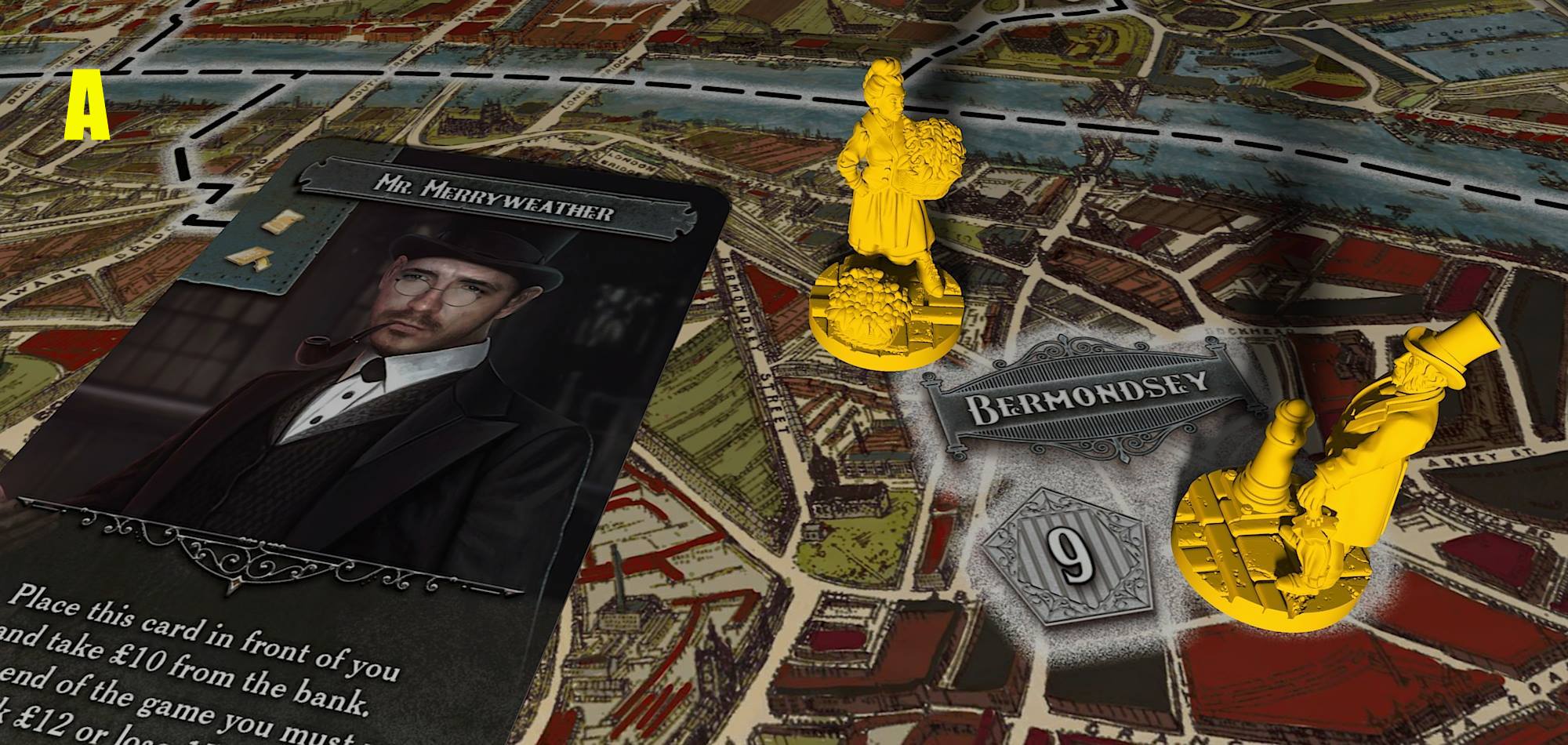 Placer un agent: Vous pouvez poser un de vos agents dans un des quartiers de Londres. Ce quartier doit être adjacent à un quartier où se situe déjà un de vos agents, ou un quartier où vous avez déjà un agent.