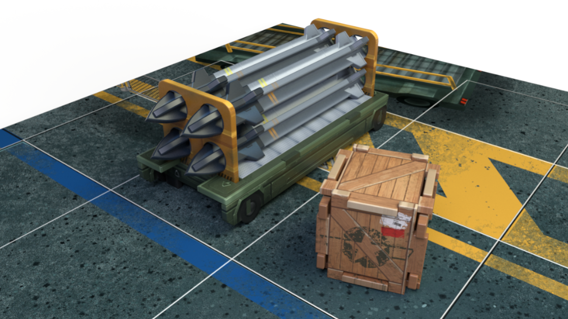 Il y a des éléments de décor en 3D inclus dans la boîte, comme des arbres, des caisses de munitions, etc…