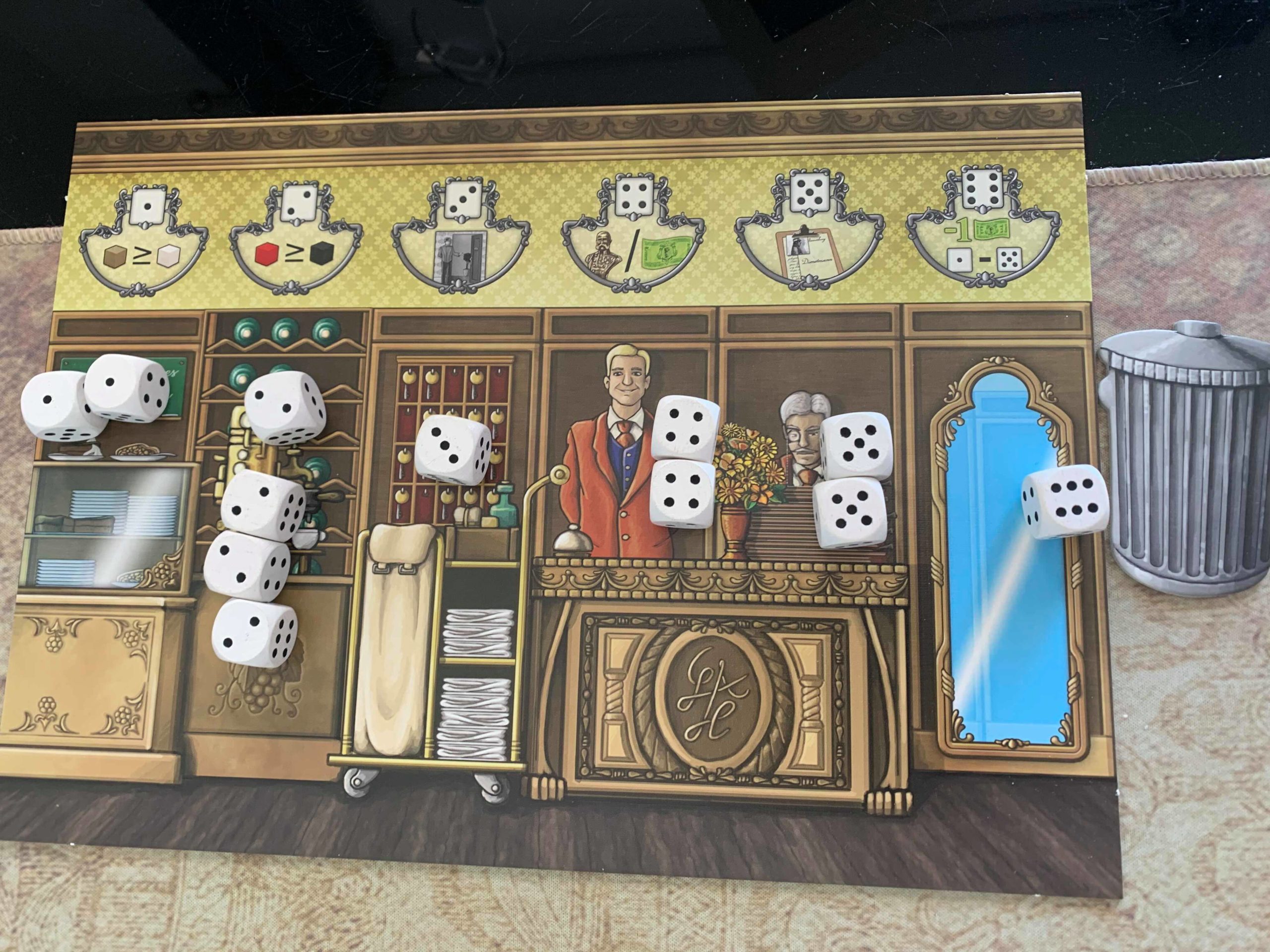 Puis des actions bonus comme servir les clients de votre restaurant depuis votre cuisine, monter un ou plusieurs clients en chambre et, le cas échéant, prendre le bonus d’un groupe de chambres occupées, revendiquer un bonus de scoring final ou encore activer un ou plusieurs de vos employés.