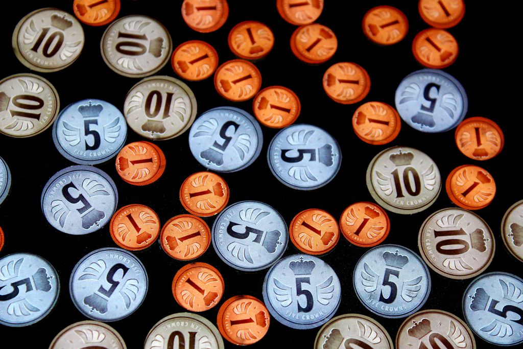 Les cristaux se présentent sous la forme de jetons qui ont des valeurs différentes. Au début de la partie on met en place tous les jetons faces cachées au centre de la table.