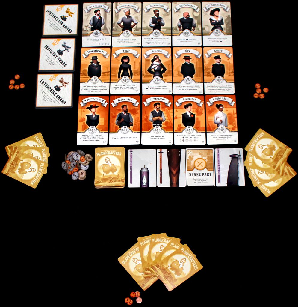 Au centre du plateau se trouvent des cartes représentant les employés que vous pourrez embaucher afin d’accélérer la production de vos avions.