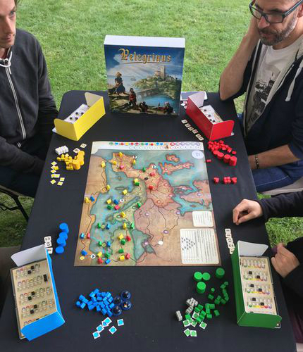 Pelegrinus nous met à la tête d’un ordre monastique au XIIème siècle dont le but est d’étendre son influence aux 4 coins du continent, en construisant des commanderies, des abbayes, en cherchant l’appui du pape et en reliant les routes de pèlerinage. Prenez garde à vos adversaires qui poursuivent le même but.