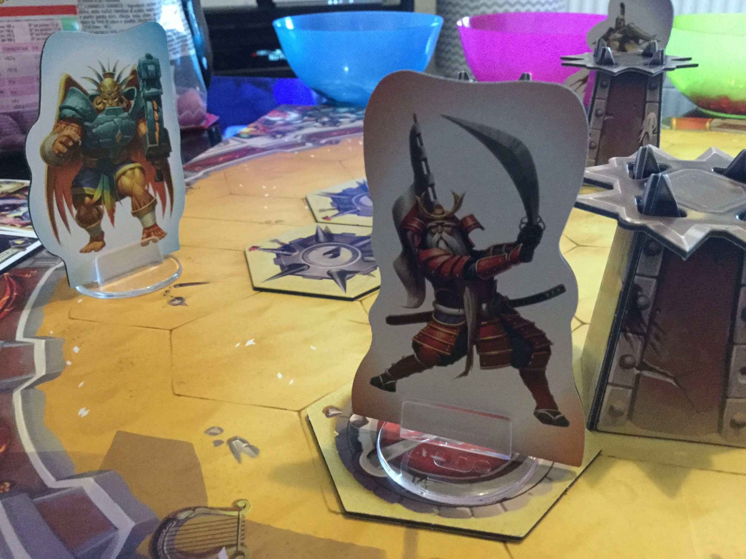 La principale difficulté aura été de faire un plateau hyper coloré, mais qui visuellement n’éclipse pas la tonne de matos qu’on pose dessus en cours de partie, elle aussi hyper colorée. Mais en proposant quand-même un univers aussi barré que percutant. Tout ça en espérant que les joueurs ne feront pas de crise d’épilepsie en jouant.
