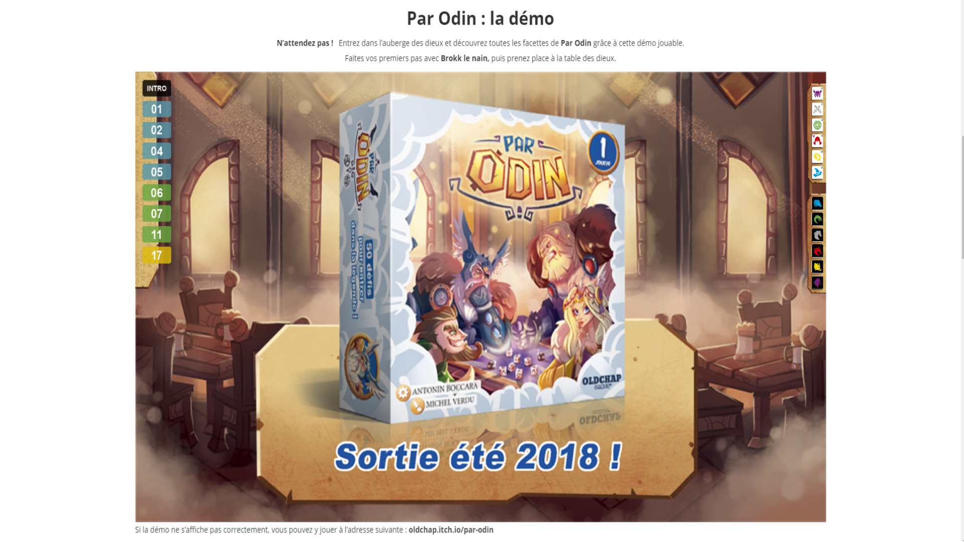 Par Odin c’est le prochain jeu d’Antonin Boccara, aussi auteur entre autres de Panic Island que nous avions vraiment aimé. Michel Verdu en est le talentueux illustrateur, Oldchap l’éditeur. Pour 1 joueur donc, à partir de 8 ans, et pour une durée de 5 à 30 minutes (parfois + si vous êtes fin nuls et que vous restez bloqués sur un défi 😉 )
