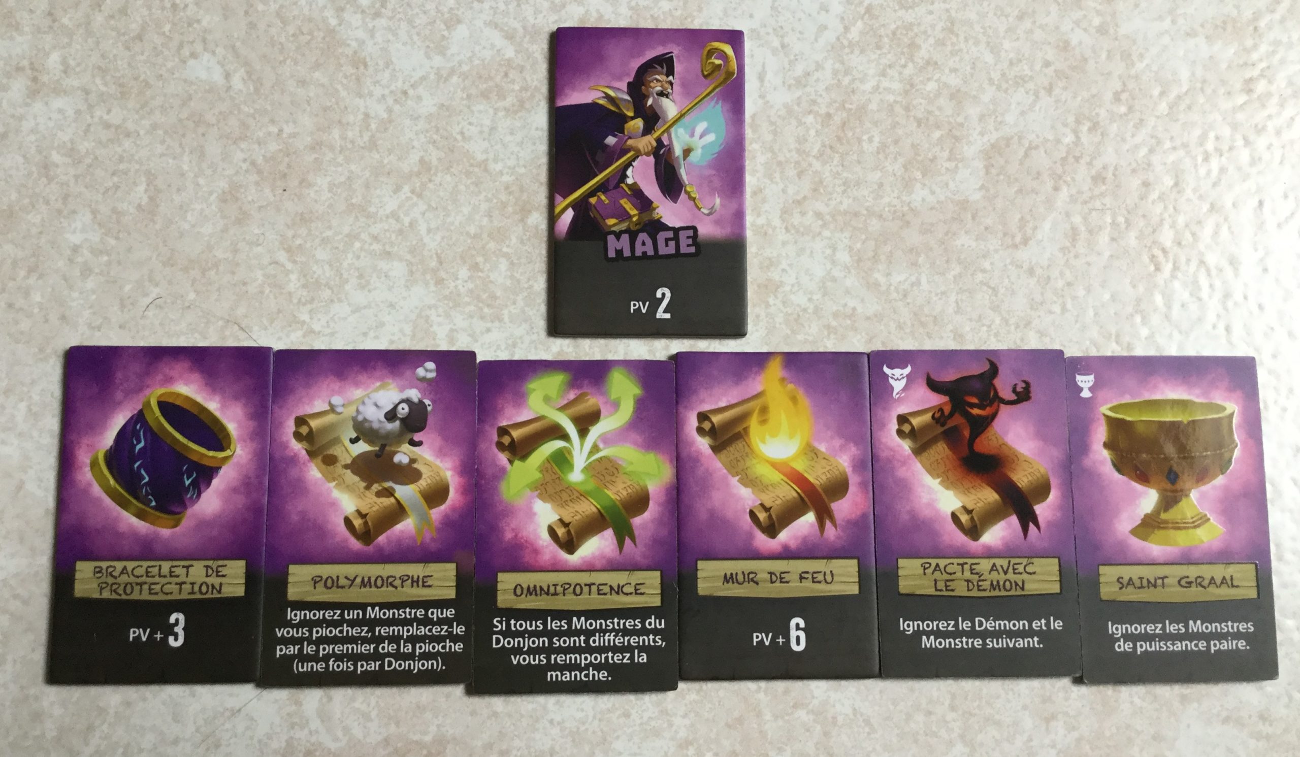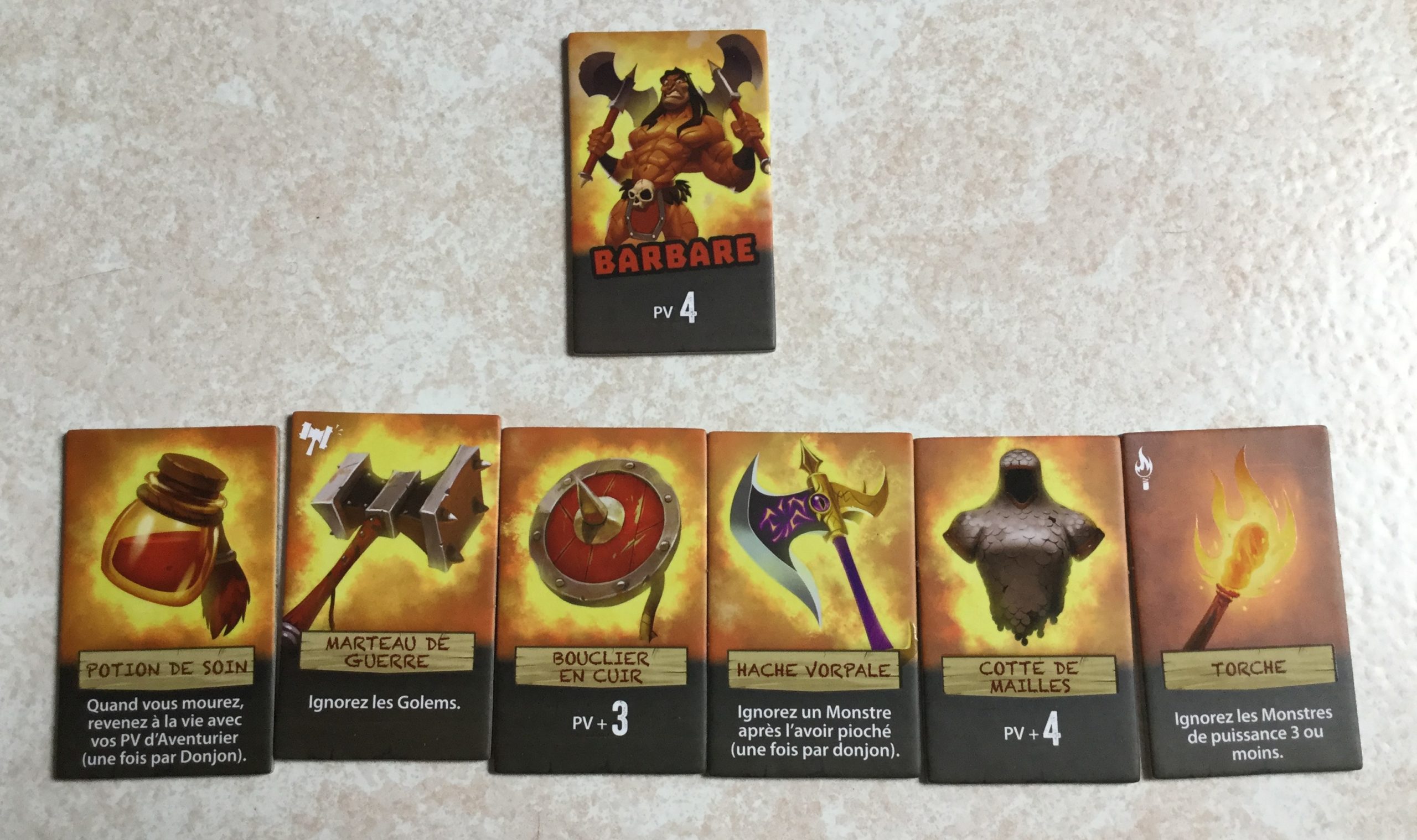 Certaines cartes équipements permettent par exemple d’ignorer tous les monstres ayant une force de 3 ou moins, d’ignorer un monstre après l’avoir pioché, de rajouter des points de vie au héros, ou de lui permettre de revenir à la vie.