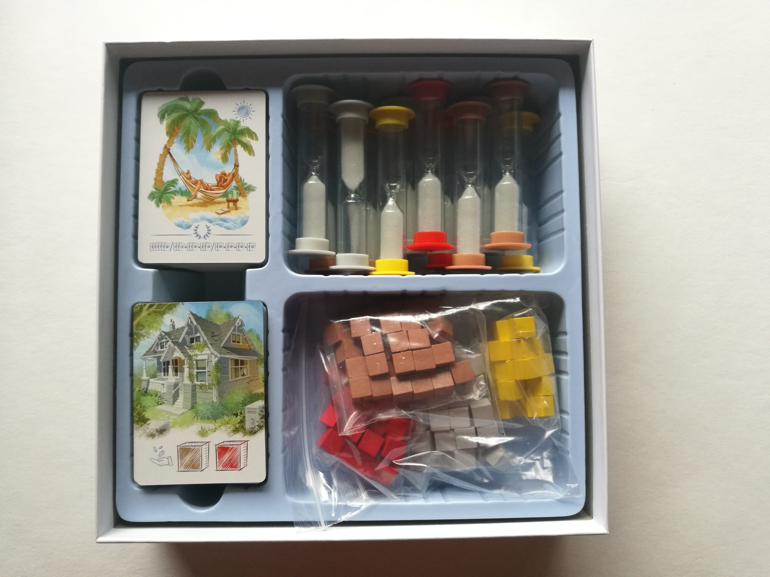 Place aux cartes, aux sabliers et aux cubes en bois pour effectuer votre dur travail et pour matérialiser vos efforts.