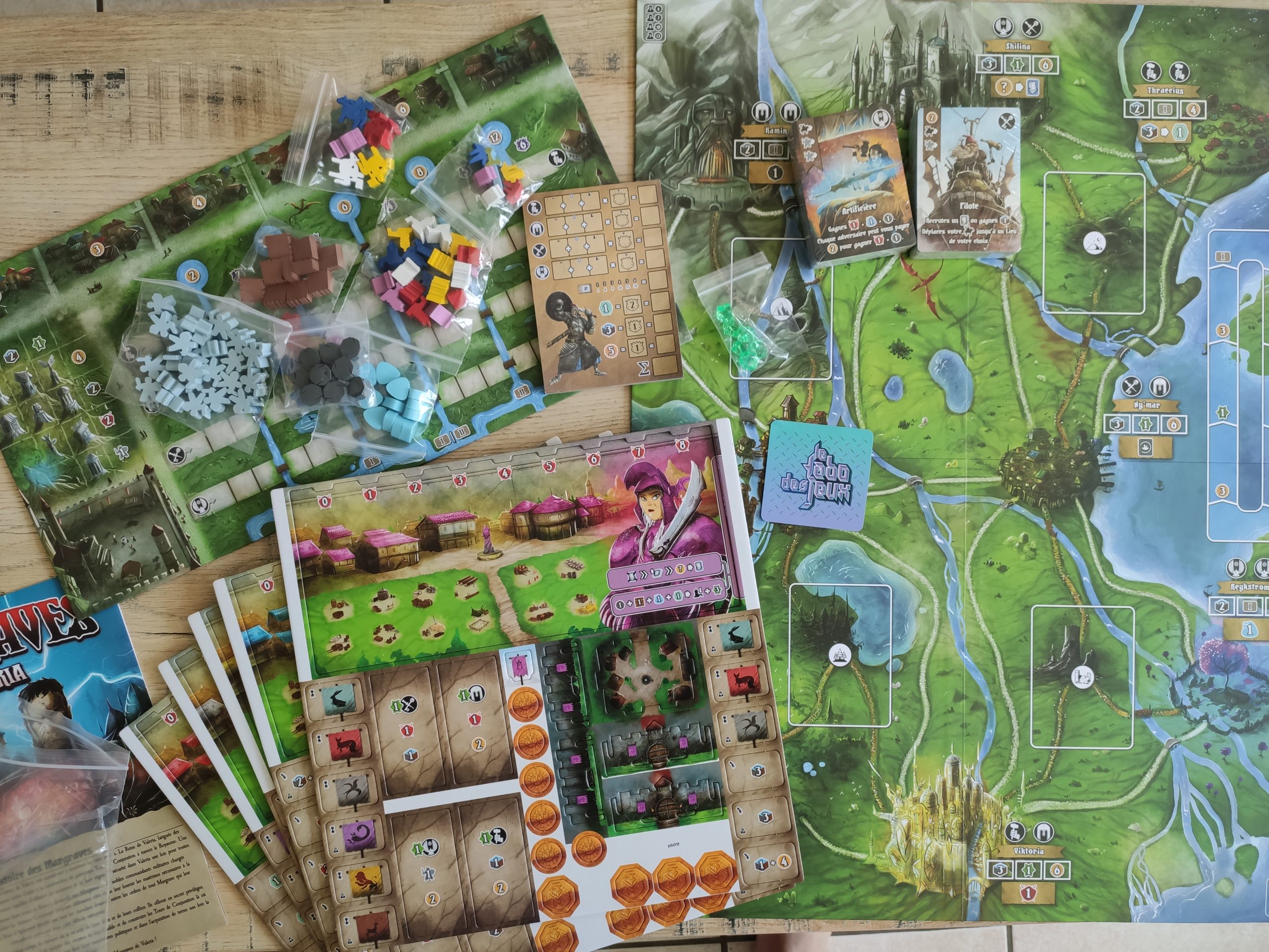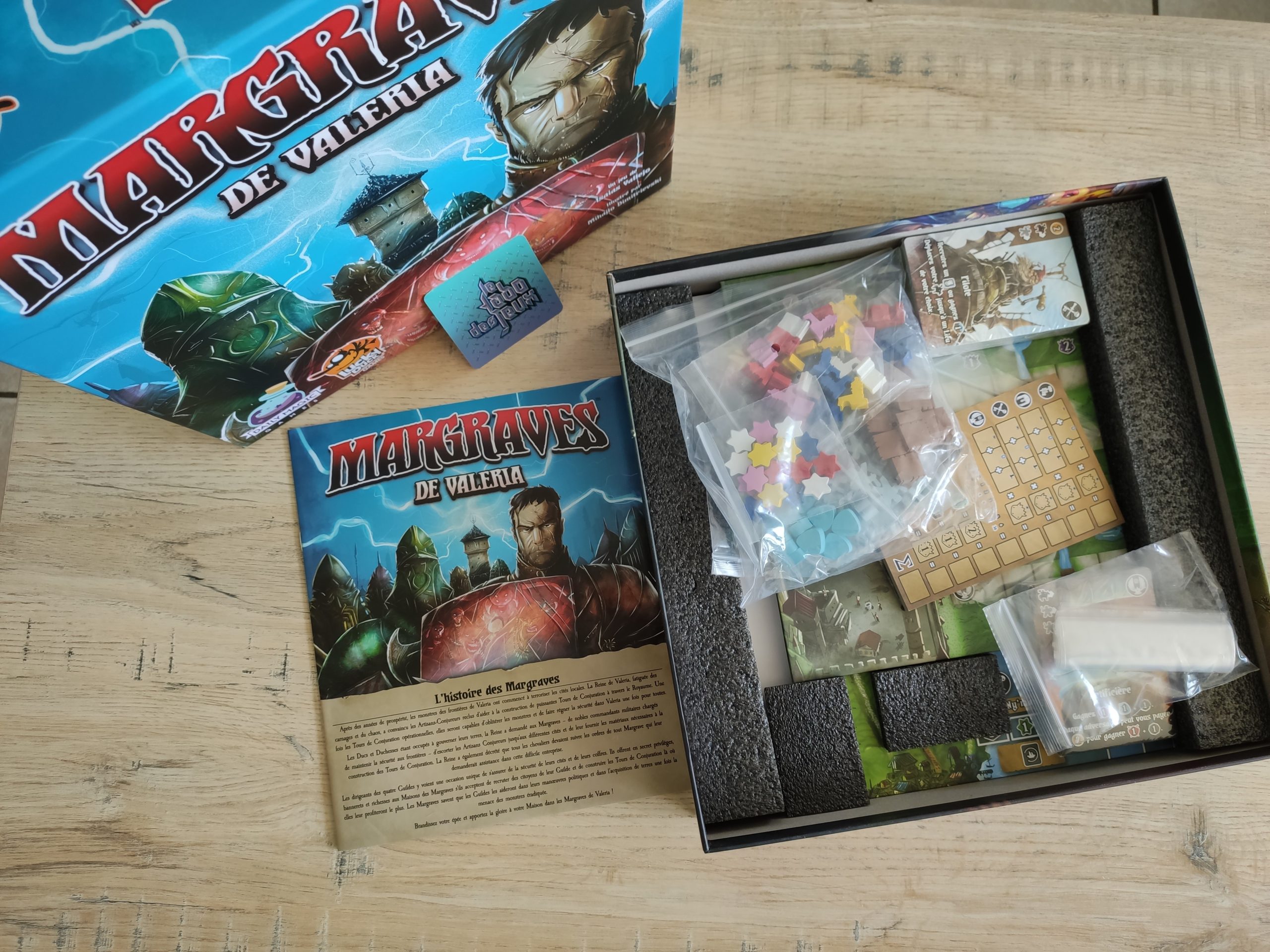 Bon autant vous le dire, j’adore l’univers de Valeria donc là on a quand même un nouveau jeu, et non une extension, dans cet univers déjà bien riche et qui propose déjà, pour faire court, un jeu de dés et d’activation, Valeria le Royaume, et ses moultes extensions, et Margraves de Valeria, qui propose du placement d’ouvriers (pour faire très court). Il y en a encore d’autres, mais comme ils ne sont pas encore traduits, et peu disponibles en France, je ne les mentionne pas.