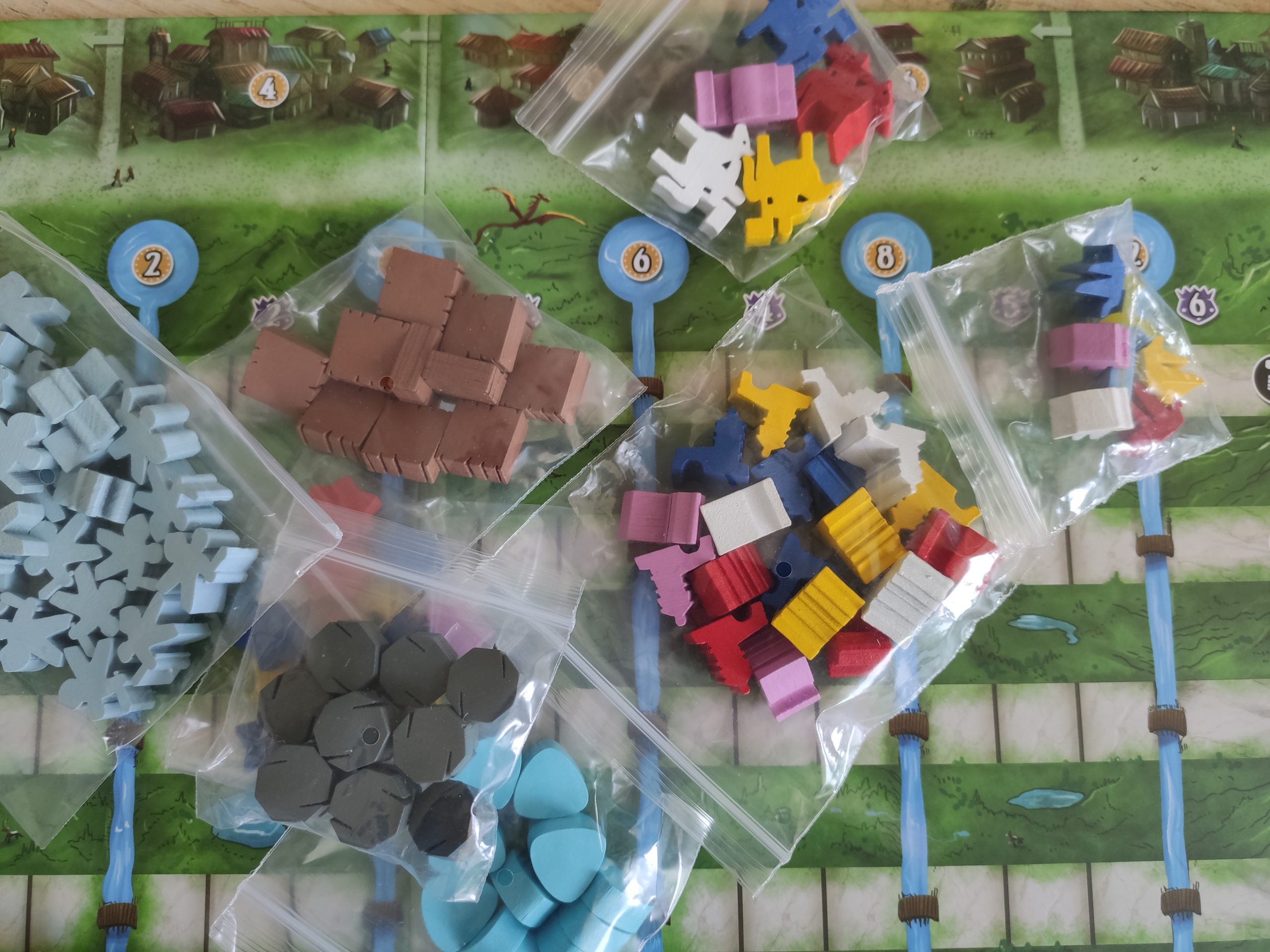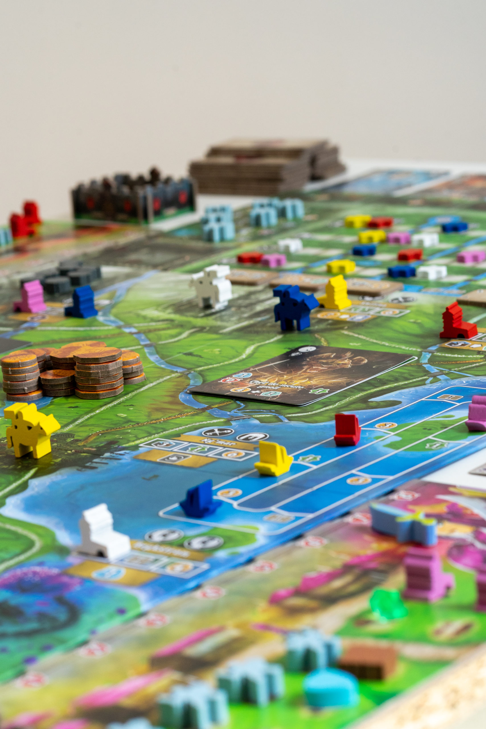Les amateurs de pléthore de matériel, jetons, cartes, éléments seront servis, et la mise en place du jeu s’en ressent en terme de durée 😉